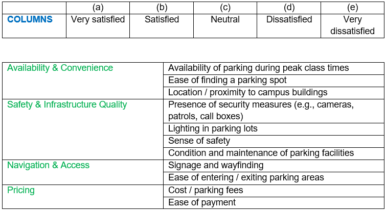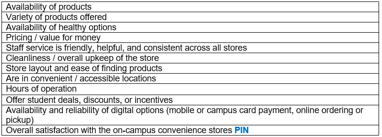 Q2. Please rate your satisfaction with the following aspects of the convenience store(s) on campus.