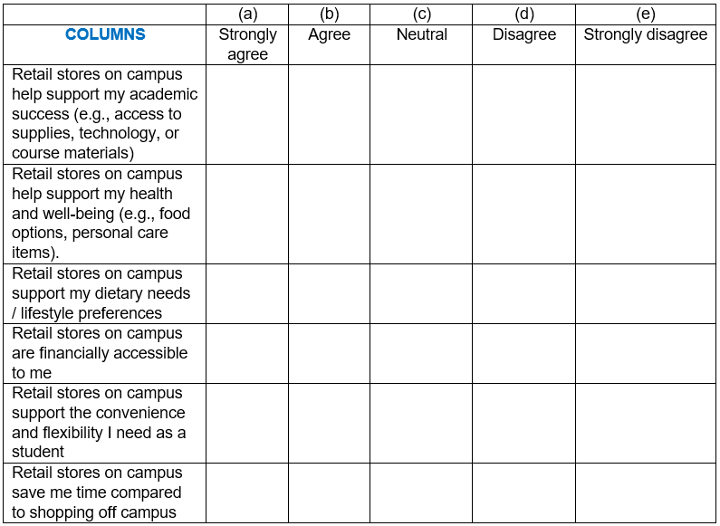 Q8. Finally, campus retails store(s) can offer a wide range of products and services that support student needs. We would like to understand the extent to which you feel your campus retail stores support you in various ways.