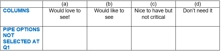 PIPE OPTIONS SELECTED AT Q1
